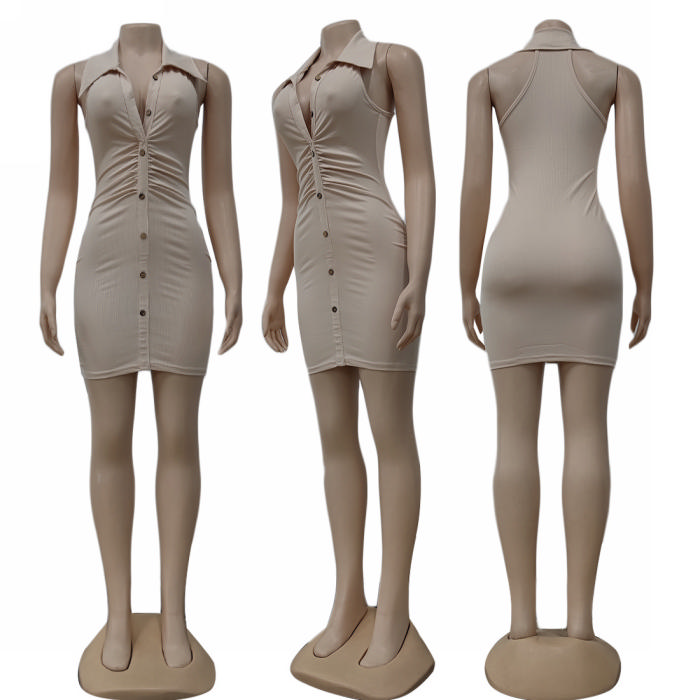 (Real Image)2022 Styles Women Fashion INS Styles Casual Front Button Mini DressSKU: #OM0227-1