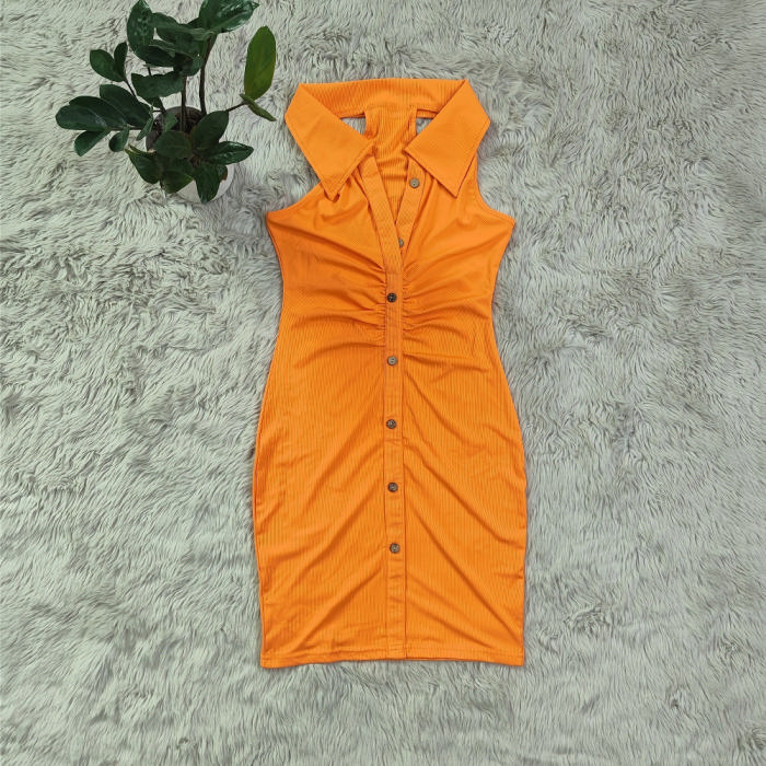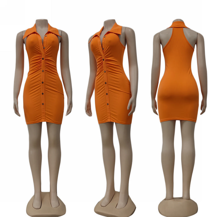 (Real Image)2022 Styles Women Fashion INS Styles Casual Front Button Mini DressSKU: #OM0227-3