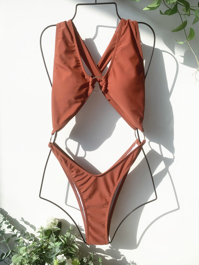 (Real Image)2022 Styles Women Fashion INS Styles Coffee One Piece SwimwearSKU: #OEM6506-1