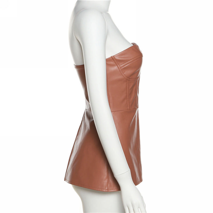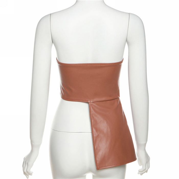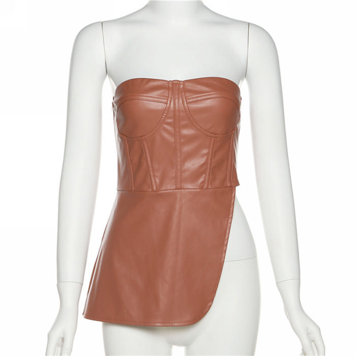 (Real Image)2022 Styles Women Fashion INS Styles Coffee PU TopsSKU: #CF49696-1