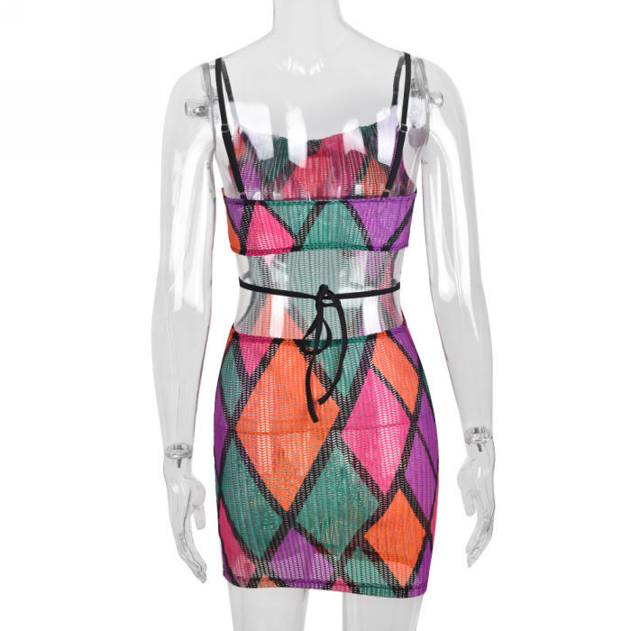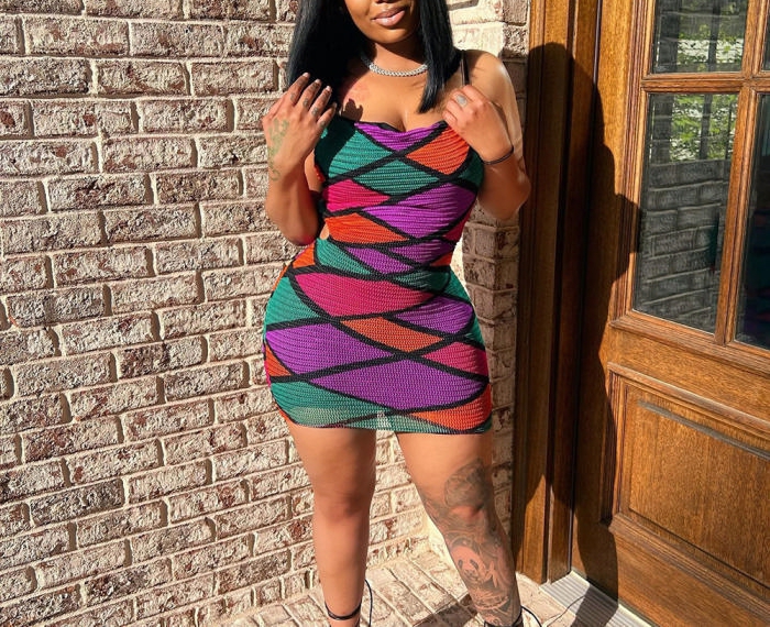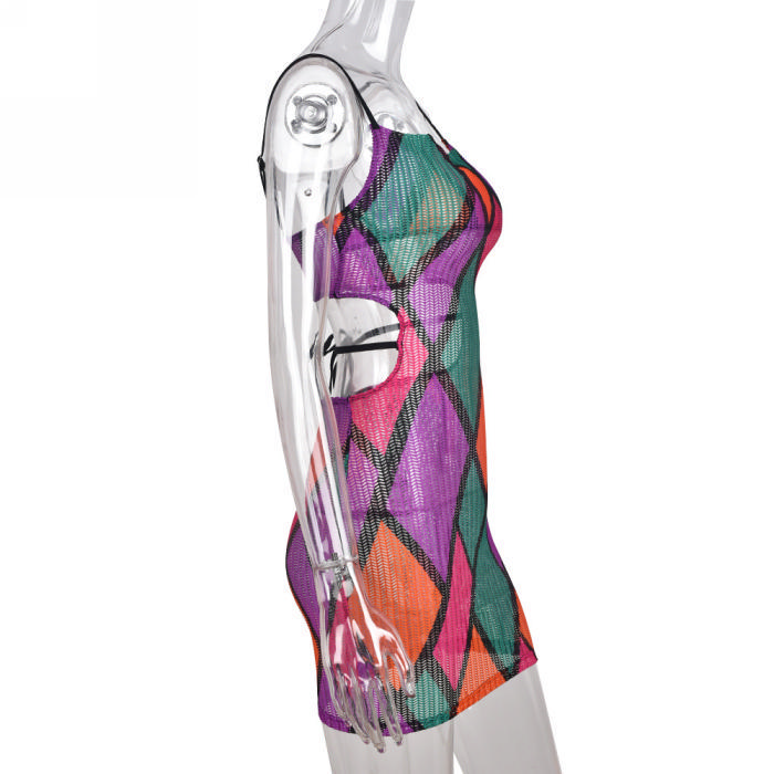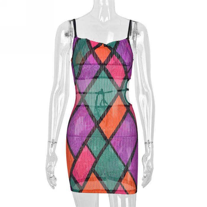 (Real Image)2022 Styles Women Fashion INS Styles Contrast Color Back Cut Out Starp Mini DressSKU: #CF59223-1