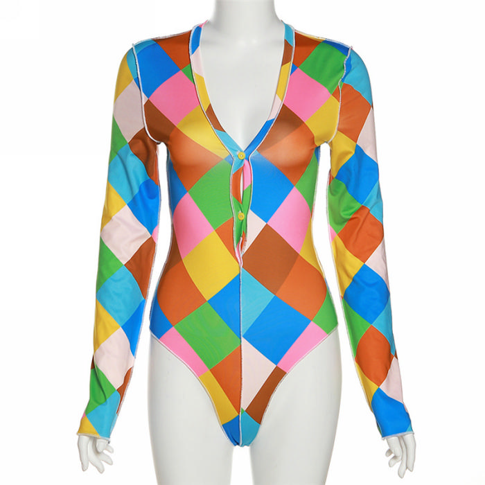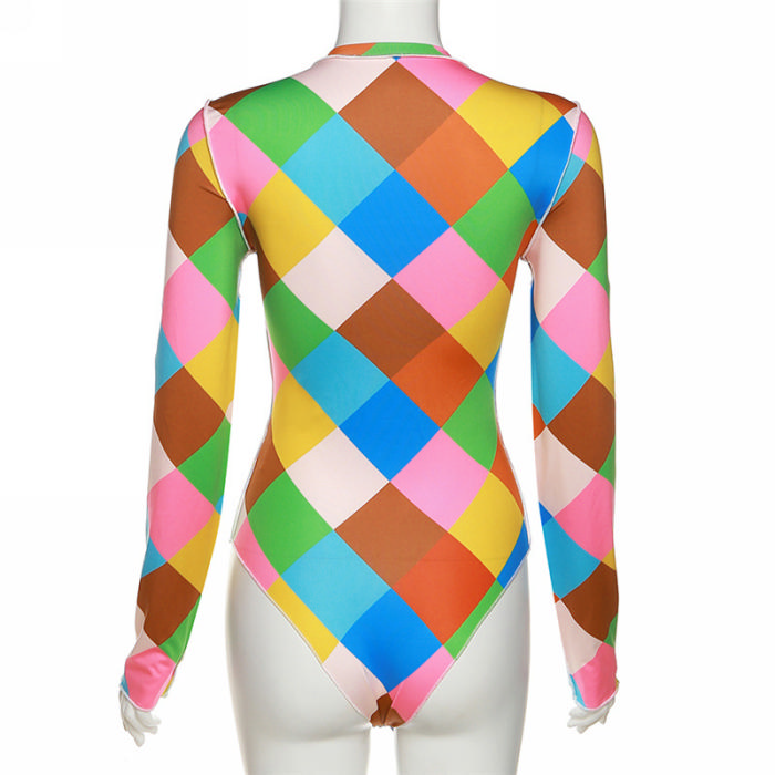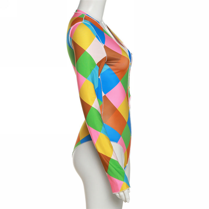 (Real Image)2022 Styles Women Fashion INS Styles Contrast Color Colorful Long Sleeve BodysuitSKU: #CF49766-1