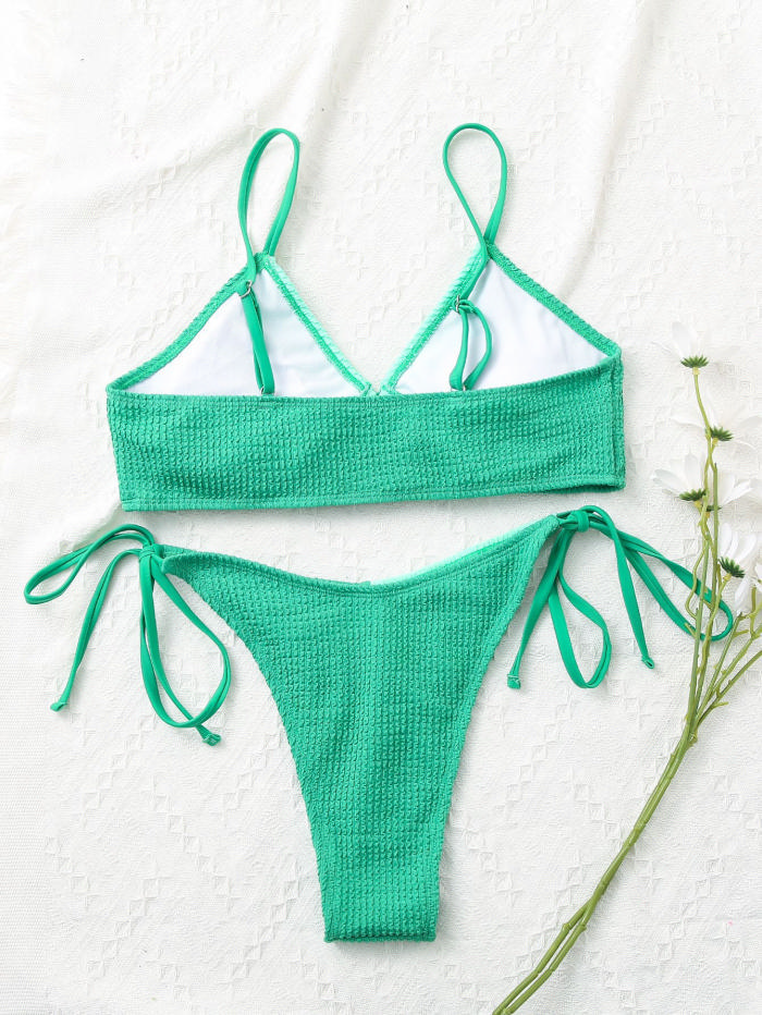 (Real Image)2022 Styles Women Fashion INS Styles Contrast Color Green Rib Bikini SetSKU: #OEM6555-1
