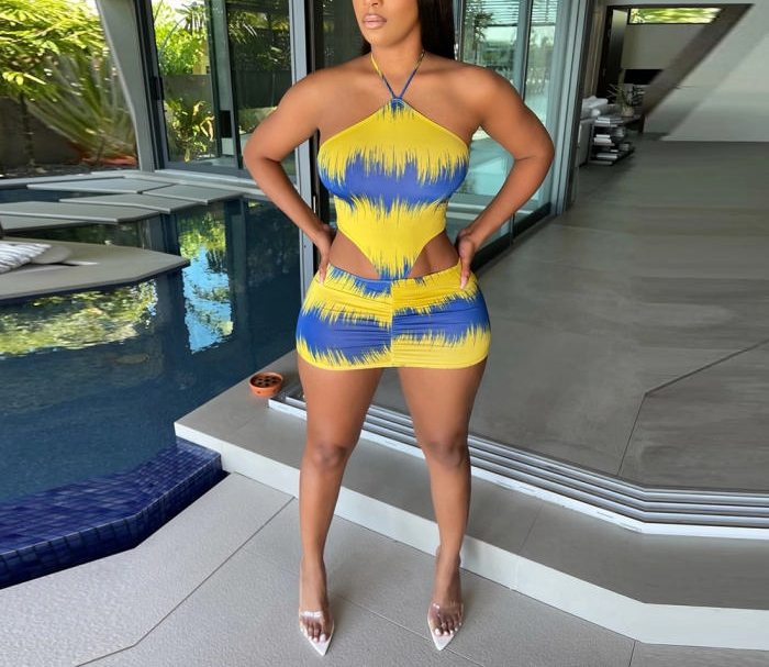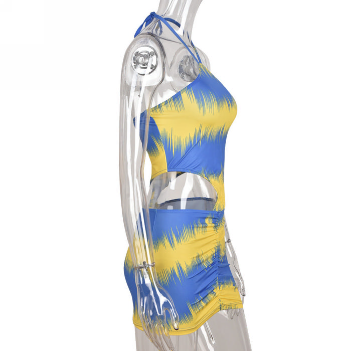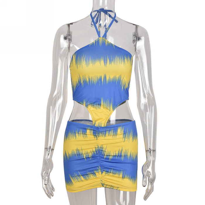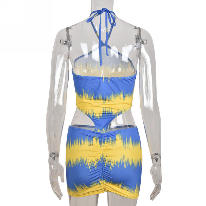 (Real Image)2022 Styles Women Fashion INS Styles Contrast Color Halter Mini DressSKU: #CF59080-1