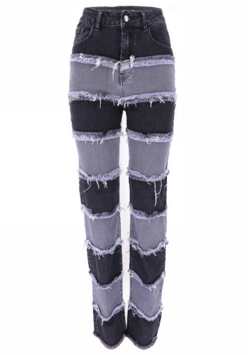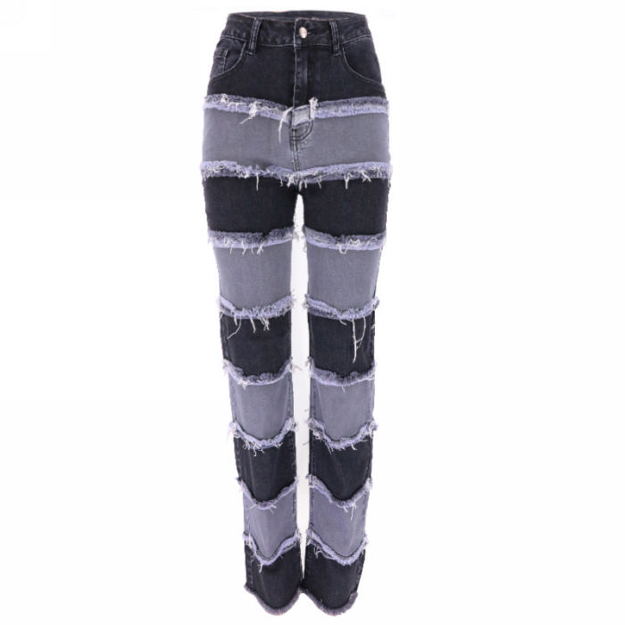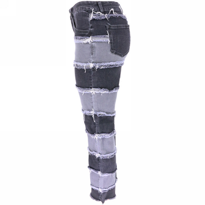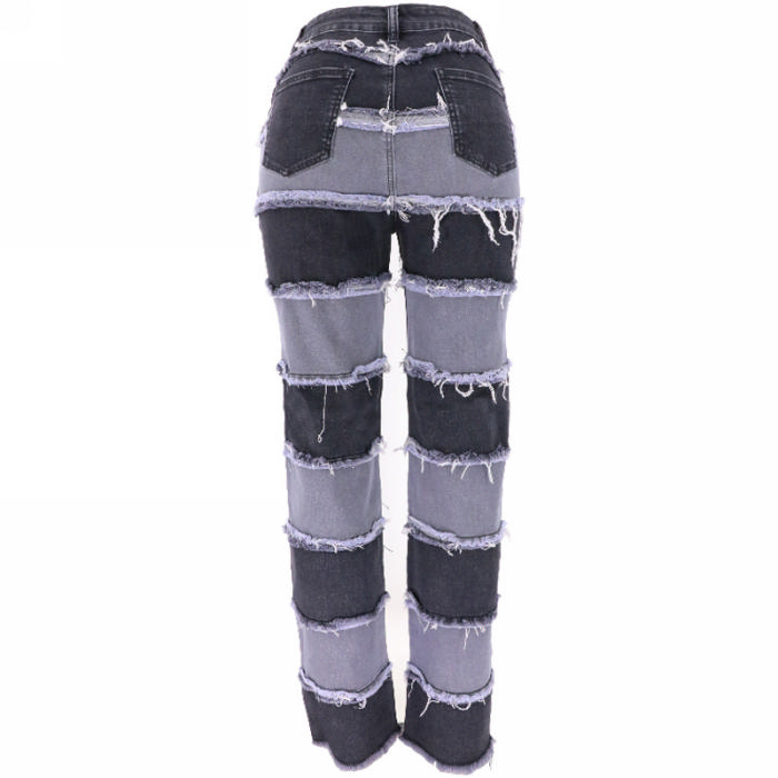 (Real Image)2022 Styles Women Fashion INS Styles Contrast Color Jeans Ripped Long PantsSKU: #XF03007-1