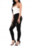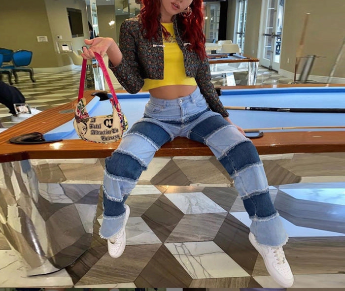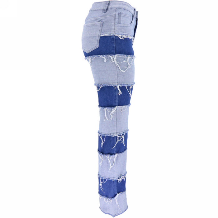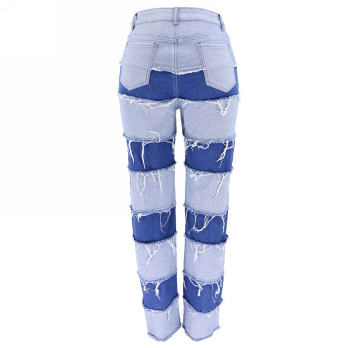 (Real Image)2022 Styles Women Fashion INS Styles Contrast Color Jeans Ripped Long PantsSKU: #XF03007-2
