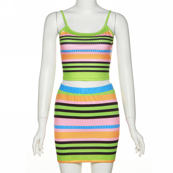 (Real Image)2022 Styles Women Fashion INS Styles Contrast Color Print Two Piece DressSKU: #CF49857-1