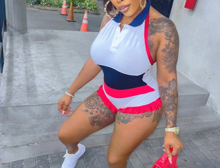 (Real Image)2022 Styles Women Fashion INS Styles Contrast Color RomperSKU: #CF47082-1