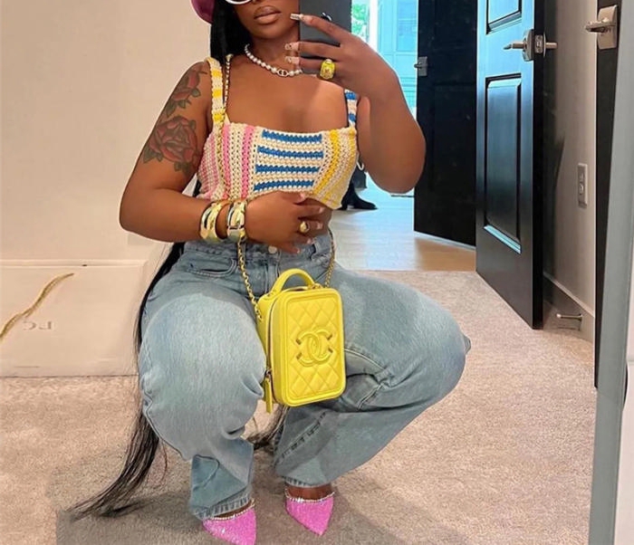 (Real Image)2022 Styles Women Fashion INS Styles Contrast Color Sweater Crop TopsSKU: #CF49764-1