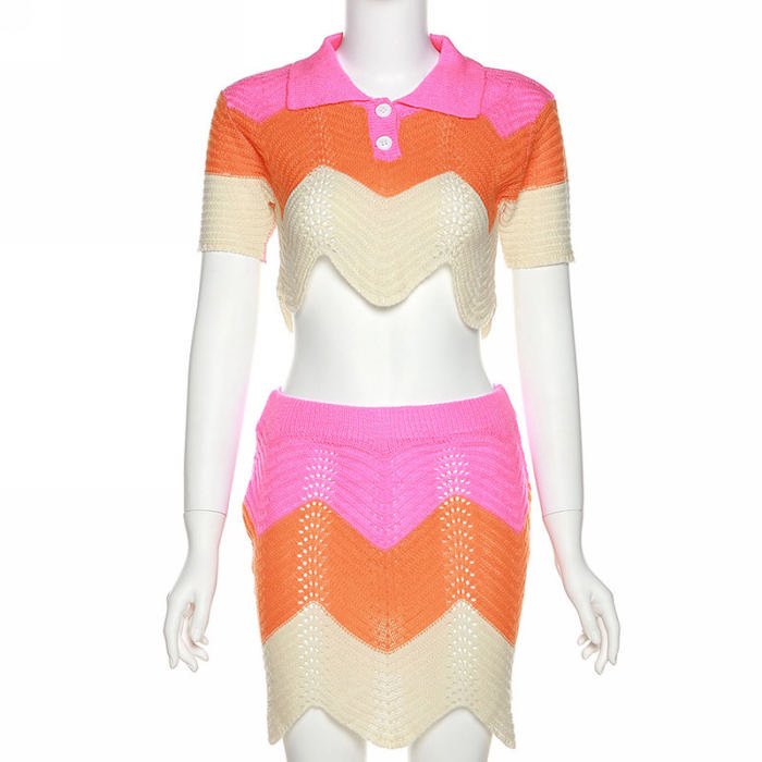 (Real Image)2022 Styles Women Fashion INS Styles Contrast Color Sweater Two Piece DressSKU: #CF48612-1