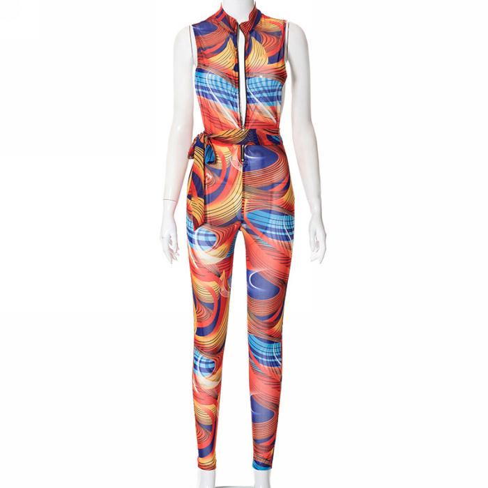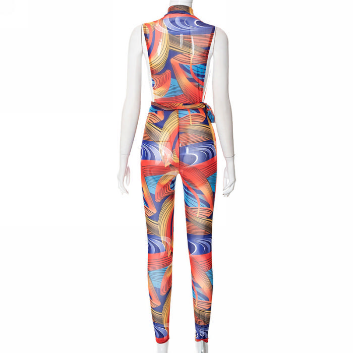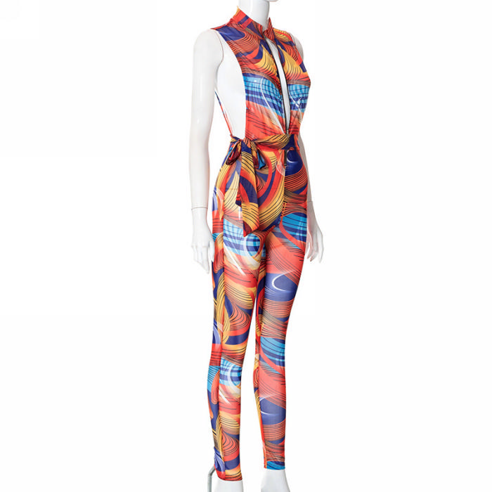 (Real Image)2022 Styles Women Fashion INS Styles Cut Out Print JumpsuitSKU: #CF47111-1