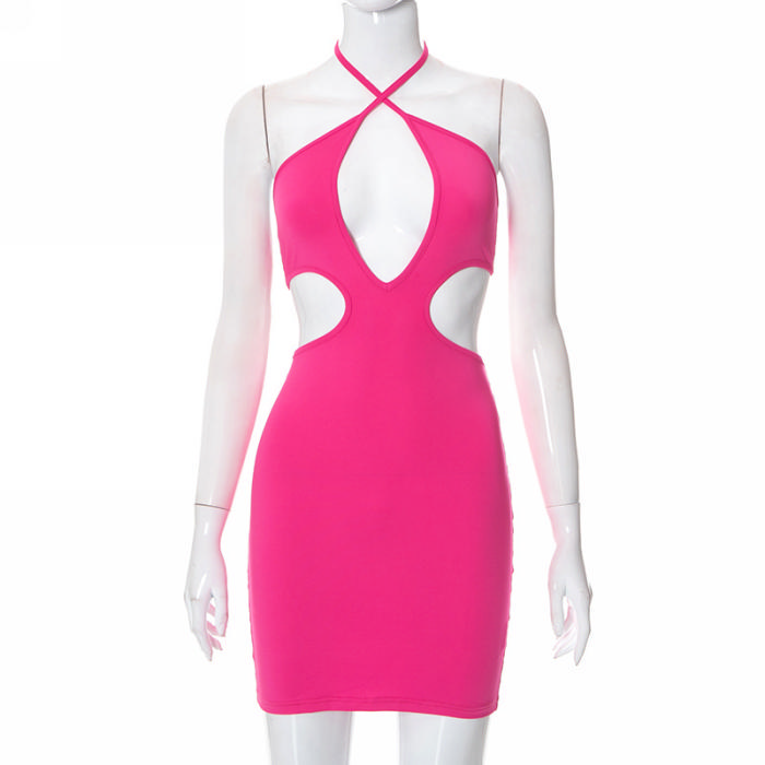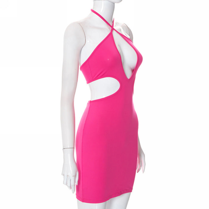 (Real Image)2022 Styles Women Fashion INS Styles Cut Out Solid Color Club DressSKU: #CF68064-1