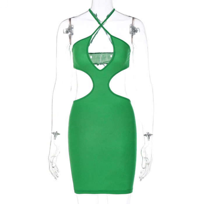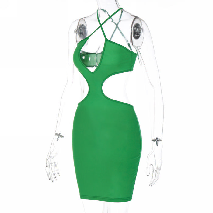 (Real Image)2022 Styles Women Fashion INS Styles Cut Out Solid Color Club DressSKU: #CF22683-1