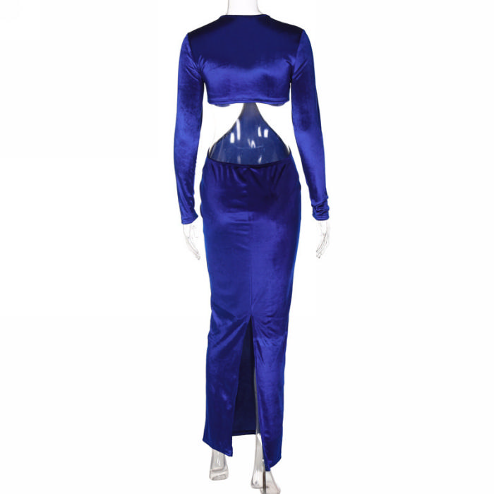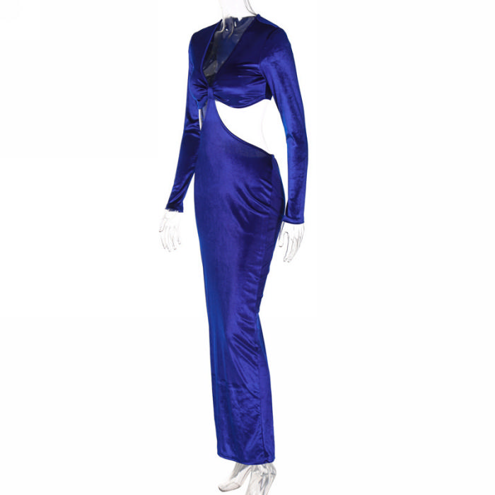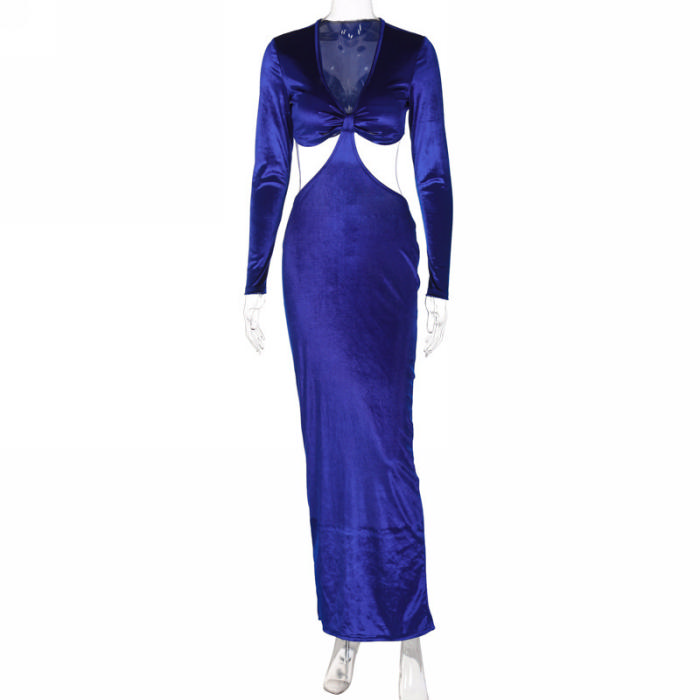 (Real Image)2022 Styles Women Fashion INS Styles Cut Out Velvet Maxi DressSKU: #CF22572-1