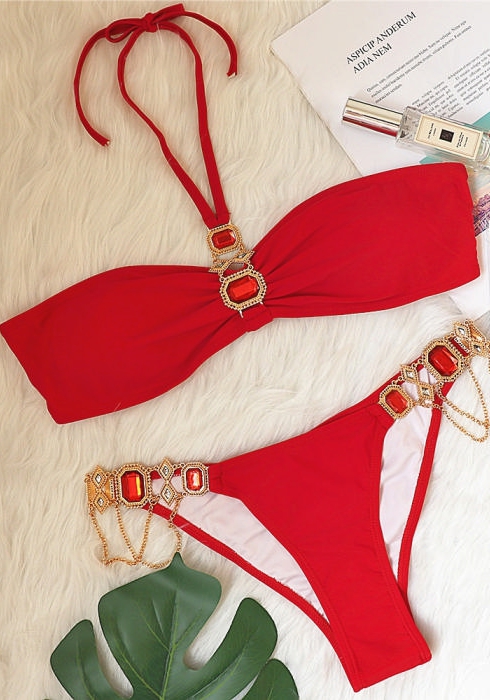 (Real Image)2022 Styles Women Fashion INS Styles Diamonds Bikini SetSKU: #CF70013-3