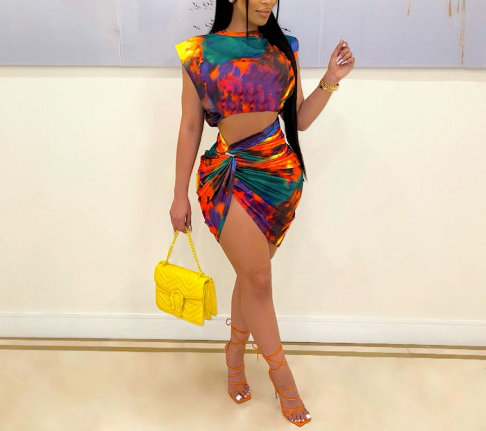 (Real Image)2022 Styles Women Fashion INS Styles Floral Irregular Two Piece DressSKU: #XF13424-1