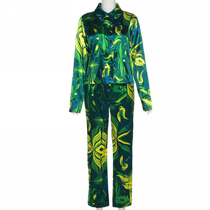 (Real Image)2022 Styles Women Fashion INS Styles Floral Shirts Tops and Long Pants Two Piece SuitSKU: #CF49811-2
