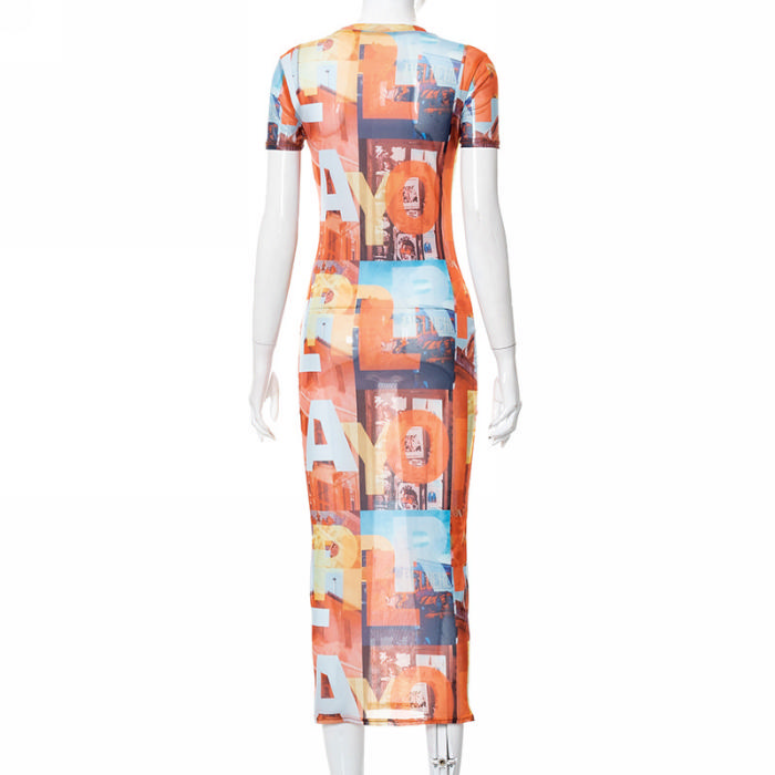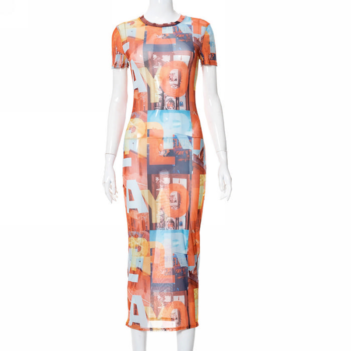 (Real Image)2022 Styles Women Fashion INS Styles Floral Short Sleeve Maxi DressSKU: #CF73006-1
