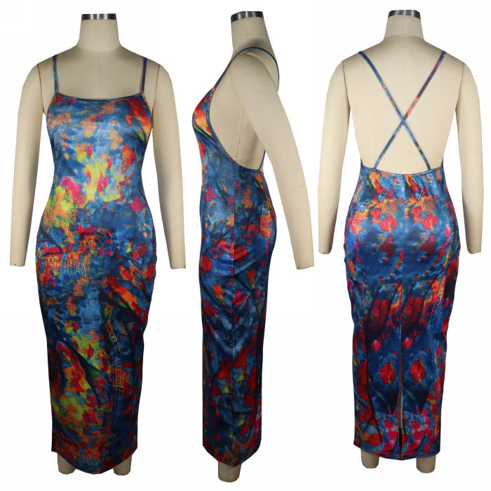 (Real Image)2022 Styles Women Fashion INS Styles Floral Strap Maxi DressSKU: #XF13429-1