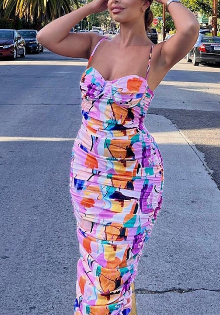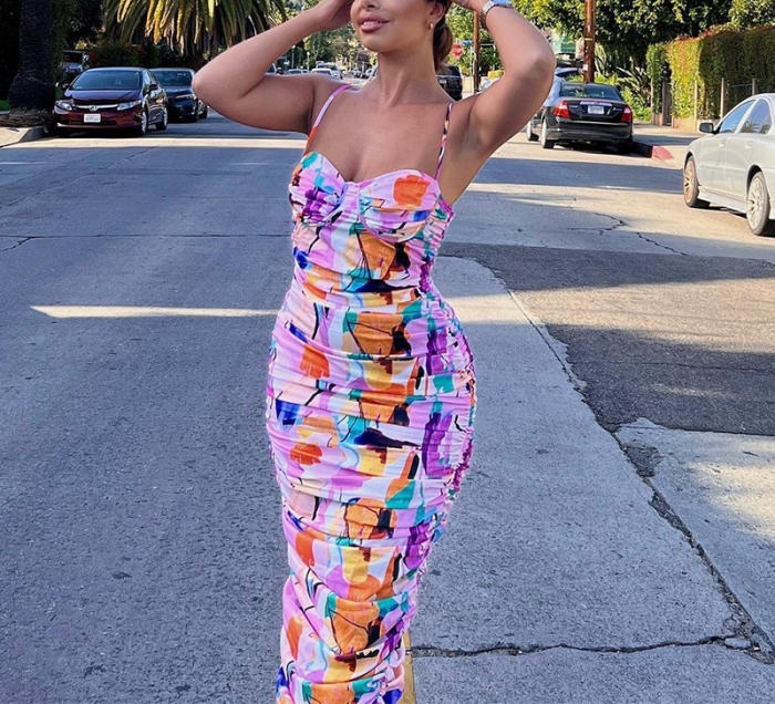 (Real Image)2022 Styles Women Fashion INS Styles Floral Tube Maxi DressSKU: #CF22707-1