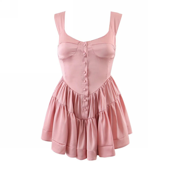 (Real Image)2022 Styles Women Fashion INS Styles Front Button Lace Hem Mini DressSKU: #CF08812-2