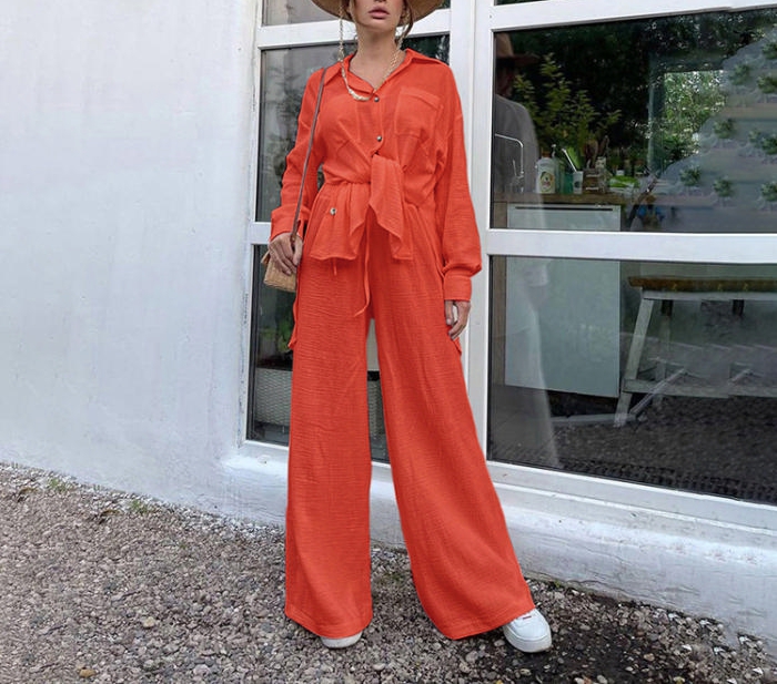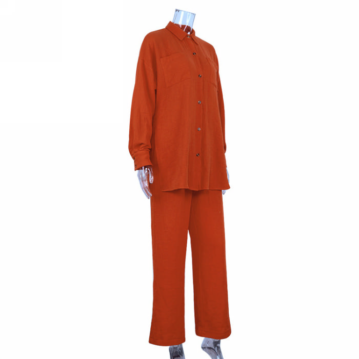 (Real Image)2022 Styles Women Fashion INS Styles Front Button Tops + Long Pants Rib Solid Color Two Piece SuitSKU: #CF72007-2