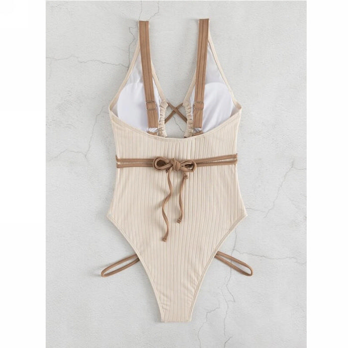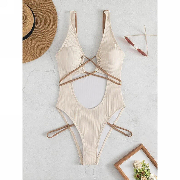 (Real Image)2022 Styles Women Fashion INS Styles Front Lace Up One Piece SwimwearSKU: #OU0073-1