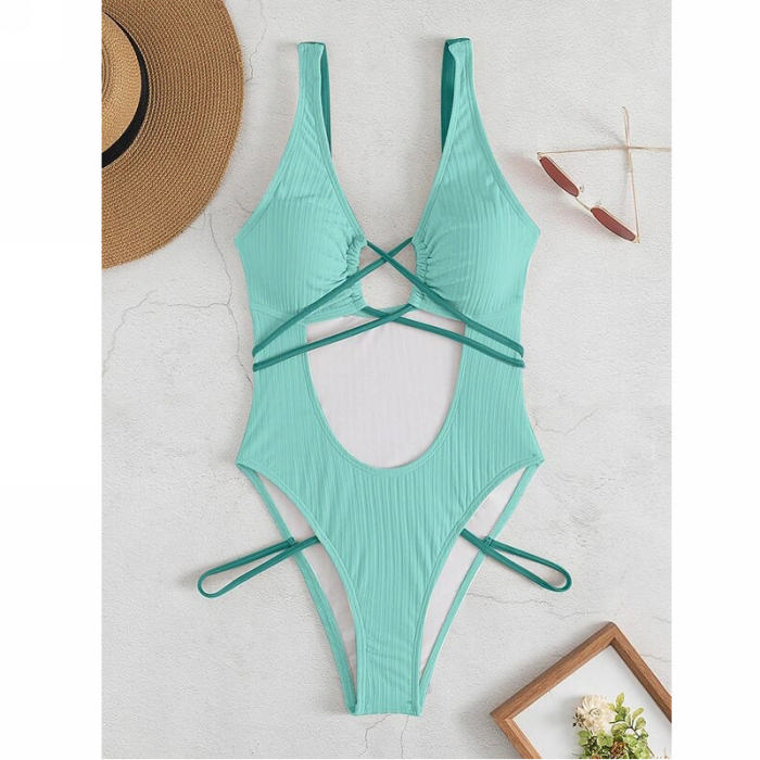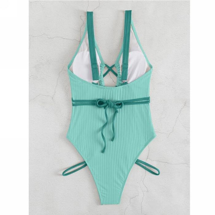 (Real Image)2022 Styles Women Fashion INS Styles Front Lace Up One Piece SwimwearSKU: #OU0073-2