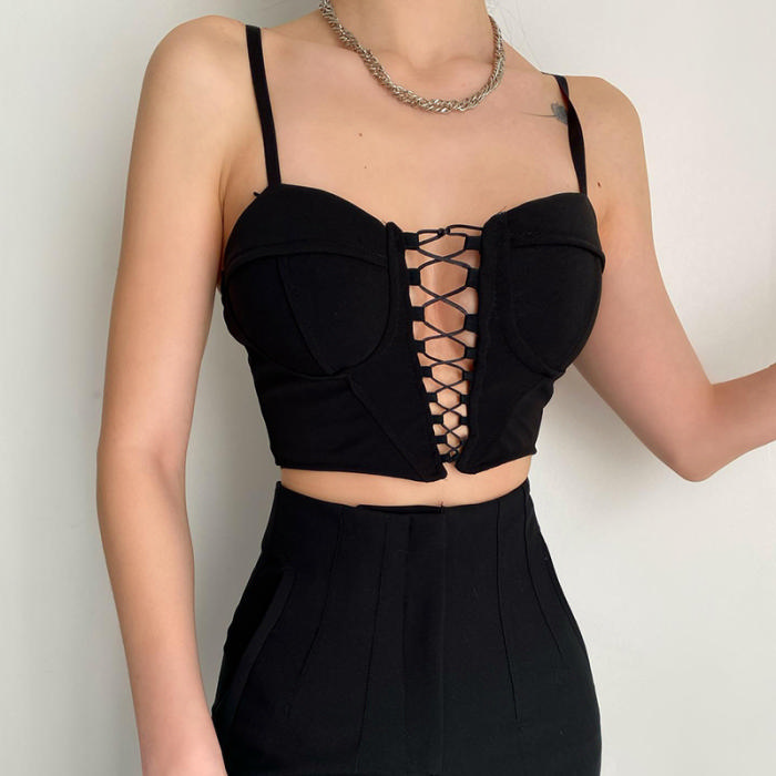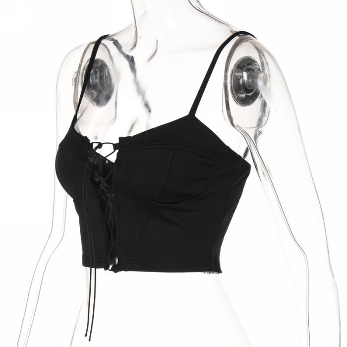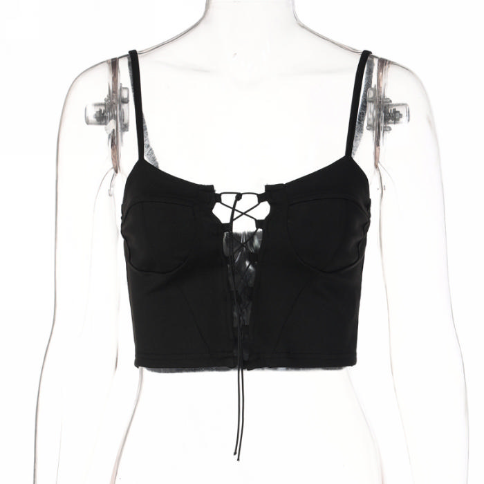 (Real Image)2022 Styles Women Fashion INS Styles Front Lace Up Strap Tank TopsSKU: #CF22597-1