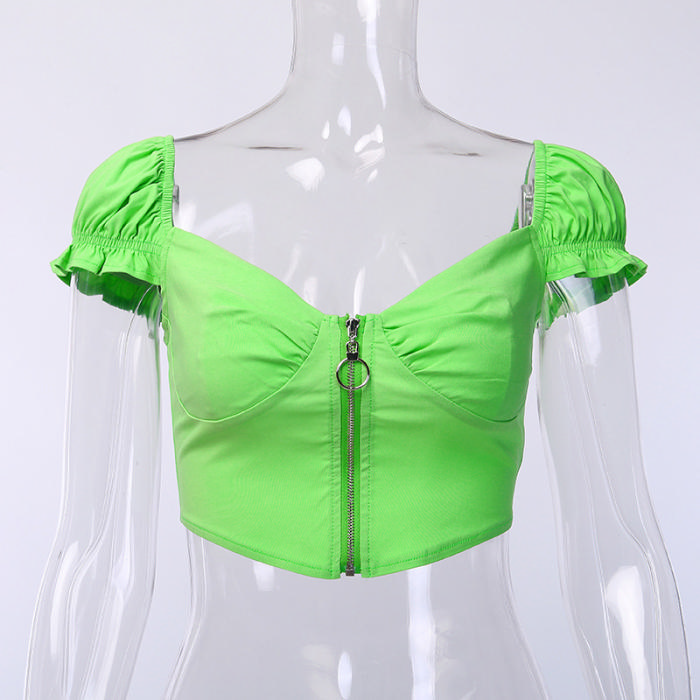 (Real Image)2022 Styles Women Fashion INS Styles Front Zipper Tank TopsSKU: #XF92530-1