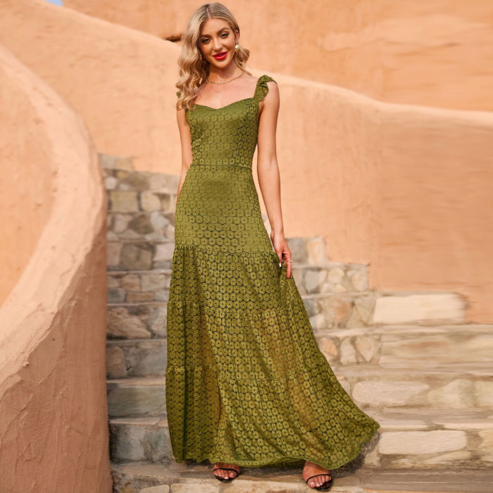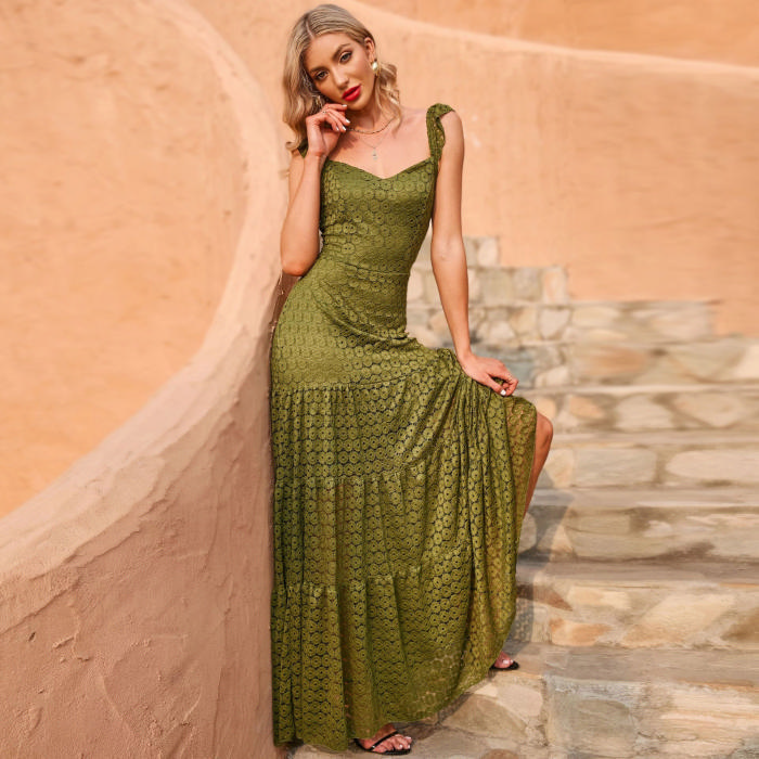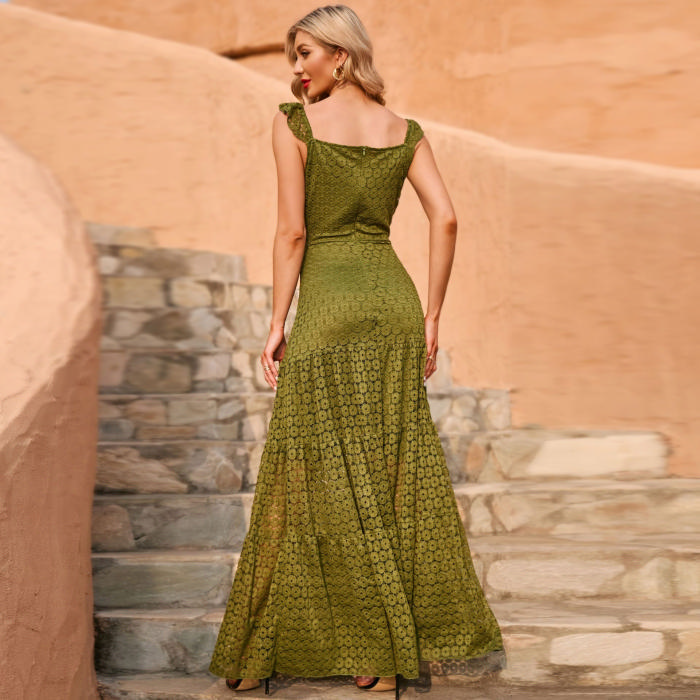 (Real Image)2022 Styles Women Fashion INS Styles Green Bohemian Maxi DressSKU: #CF09069-1