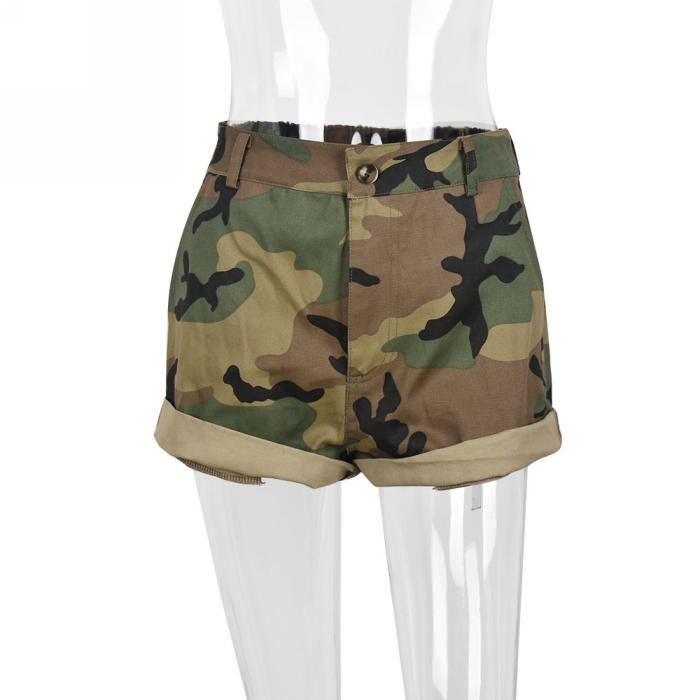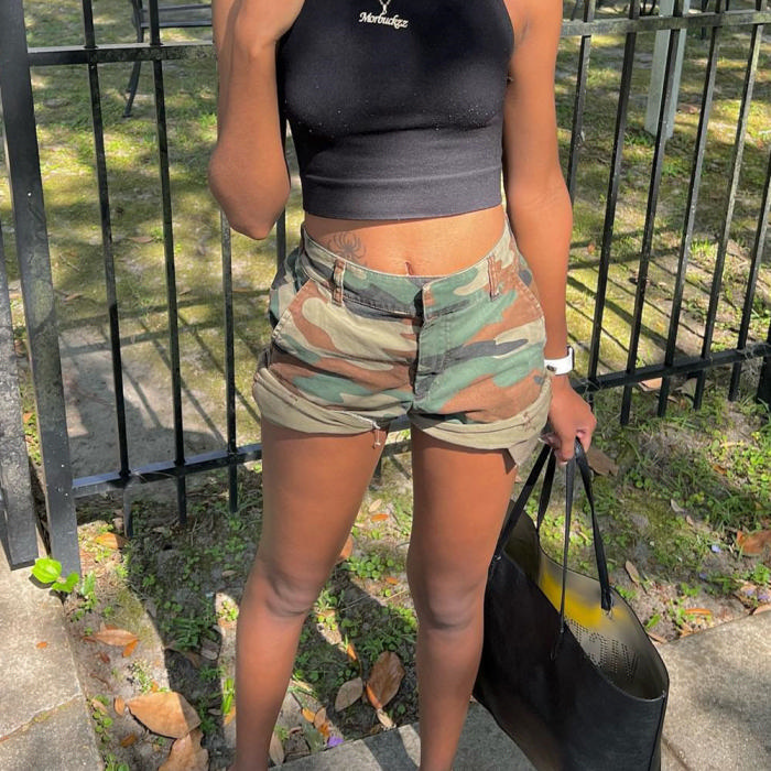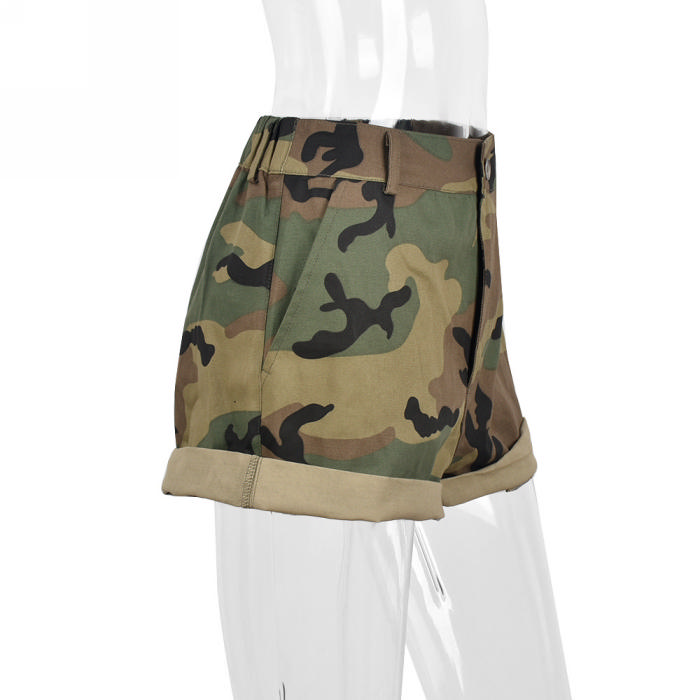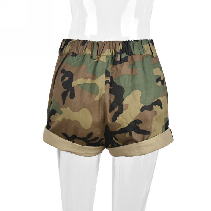 (Real Image)2022 Styles Women Fashion INS Styles Green Camouflage Short PantsSKU: #CF59190-1