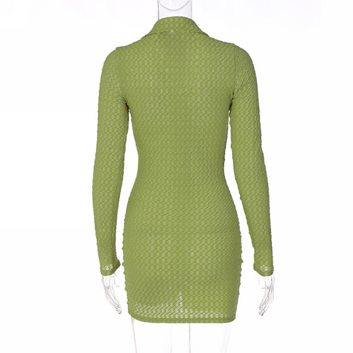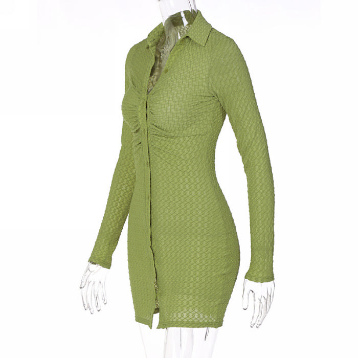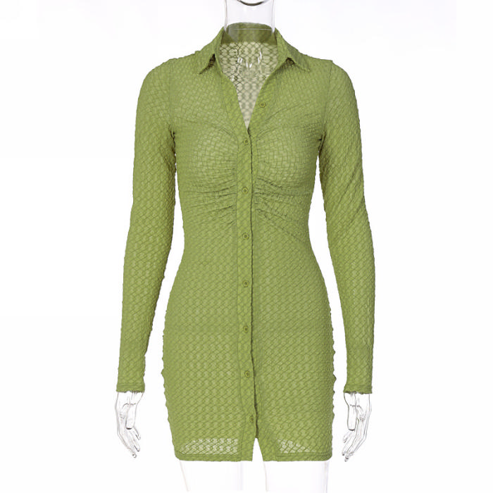 (Real Image)2022 Styles Women Fashion INS Styles Green Long Sleeve Front Button Mini DressSKU: #CF22720-1