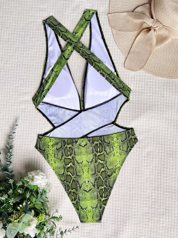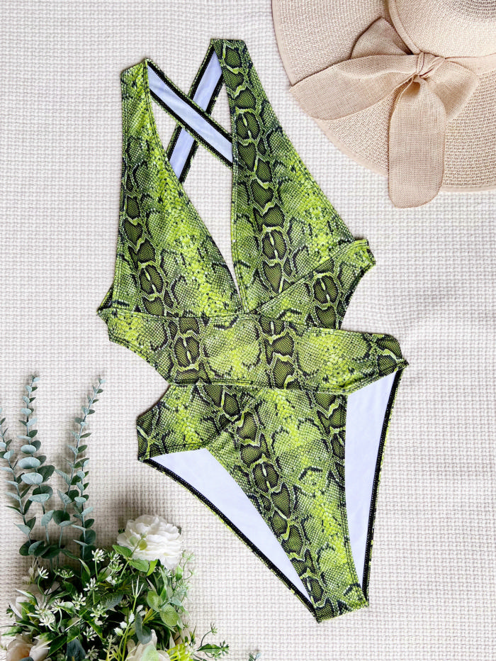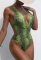 (Real Image)2022 Styles Women Fashion INS Styles Green Print Snake One Piece SwimwearSKU: #CF60070-1