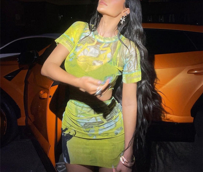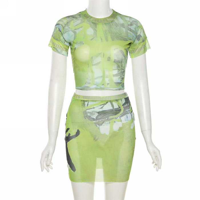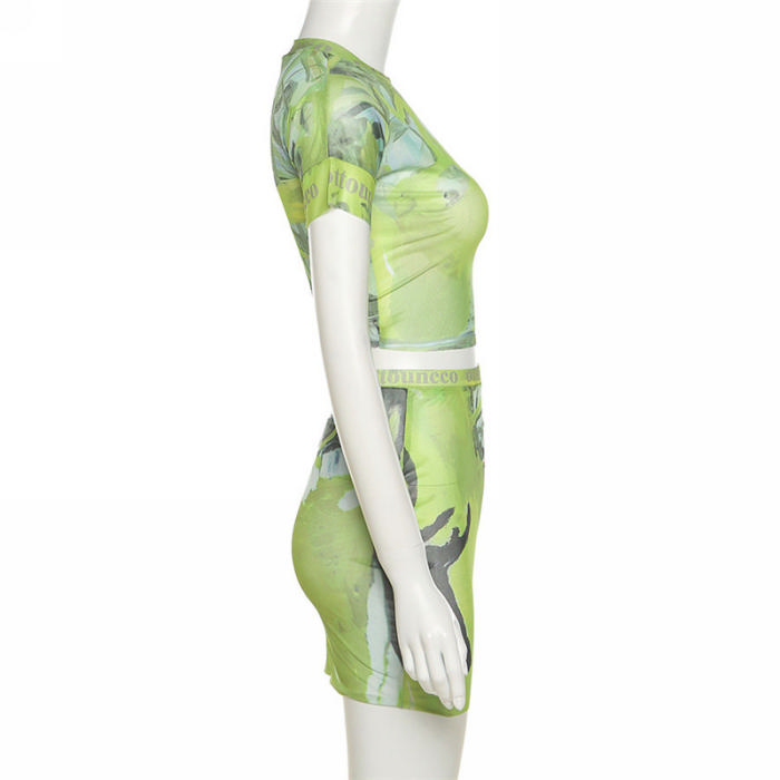 (Real Image)2022 Styles Women Fashion INS Styles Green Print Two Piece SuitSKU: #RO010-1
