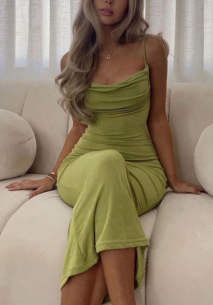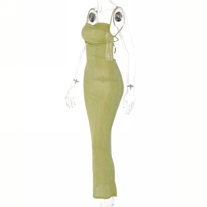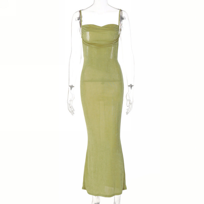(Real Image)2022 Styles Women Fashion INS Styles Green Strap Maxi DressSKU: #CF22662-1