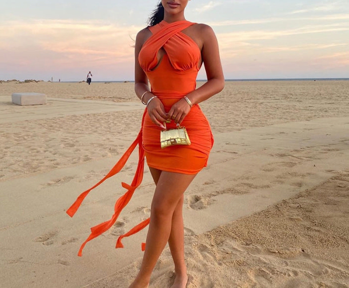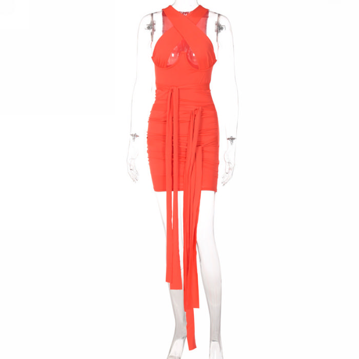 (Real Image)2022 Styles Women Fashion INS Styles Halter Bandage Mini DressSKU: #OU0097-2