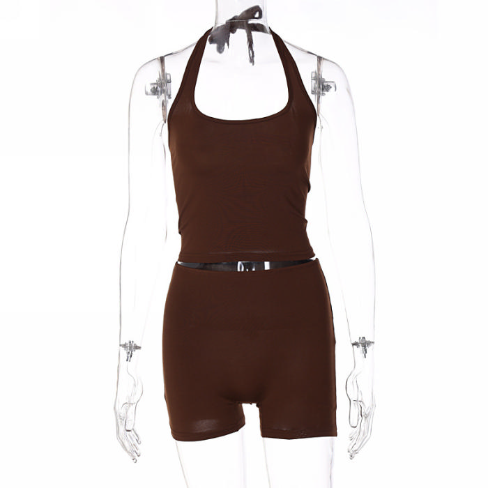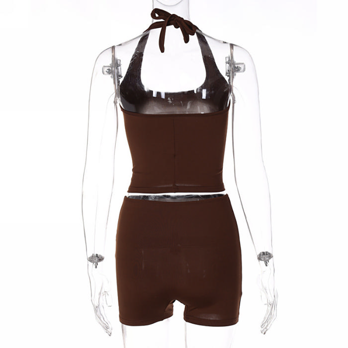 (Real Image)2022 Styles Women Fashion INS Styles Halter Short Two Piece SuitSKU: #CF22678-2