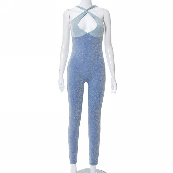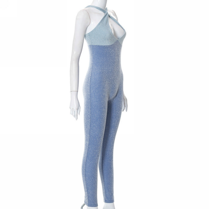 (Real Image)2022 Styles Women Fashion INS Styles Halter Velvet JumpsuitSKU: #CF69007-1