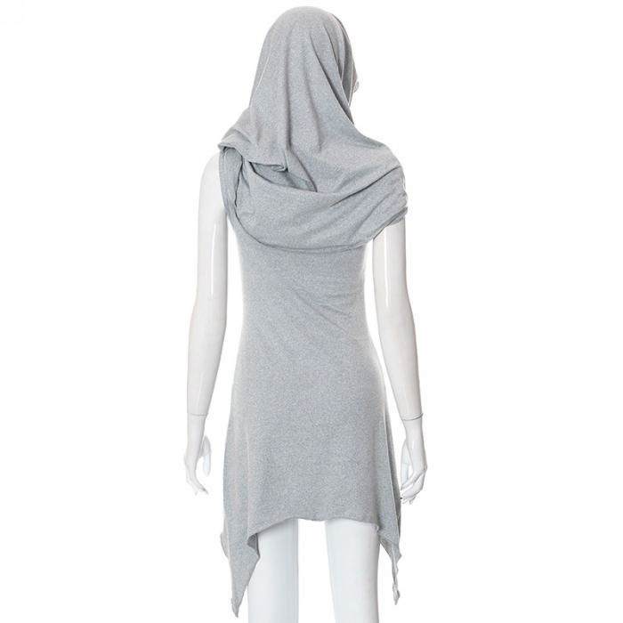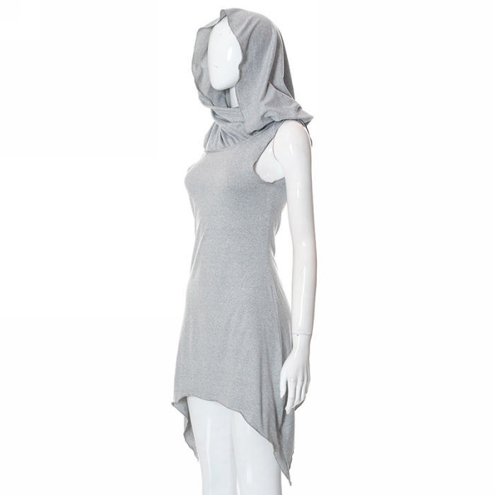 (Real Image)2022 Styles Women Fashion INS Styles Hoodie Solid Color Irregular Mini DressSKU: #CF68060-1