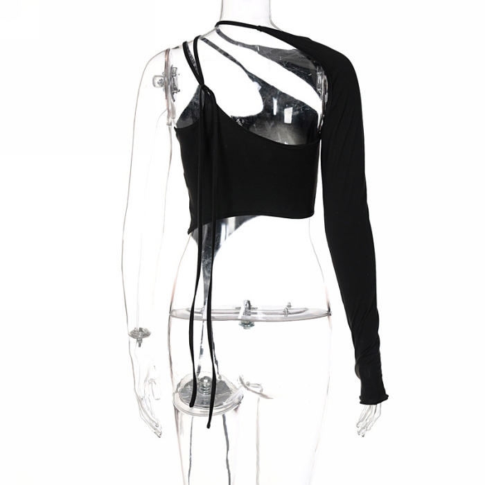 (Real Image)2022 Styles Women Fashion INS Styles Irregular Long Sleeve TeeSKU: #CF22626-1