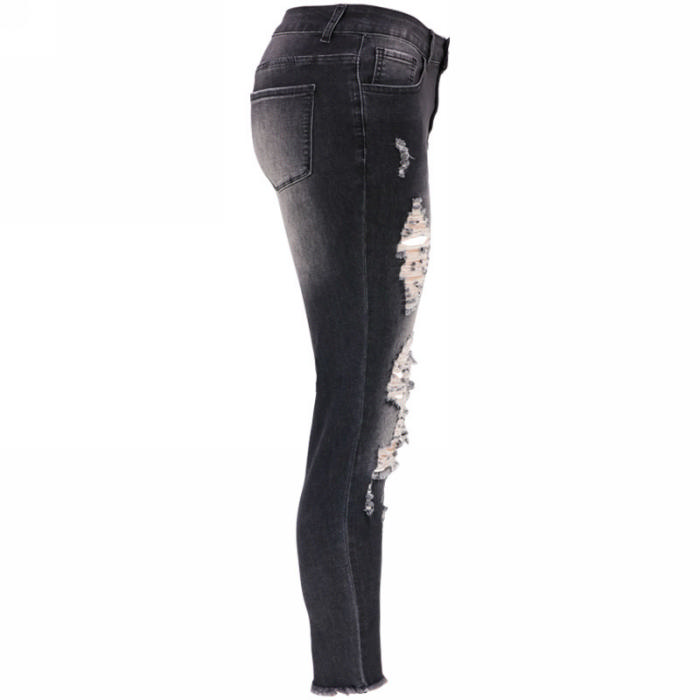 (Real Image)2022 Styles Women Fashion INS Styles Jeans Ripped Long PantsSKU: #XF03001-2