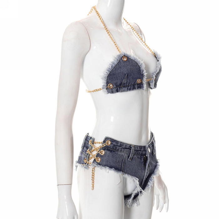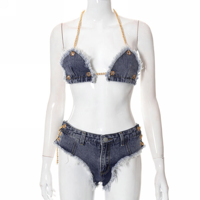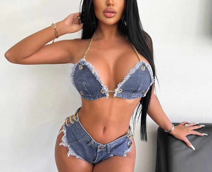 (Real Image)2022 Styles Women Fashion INS Styles Jeans Short Two Piece SuitSKU: #CF68032-1