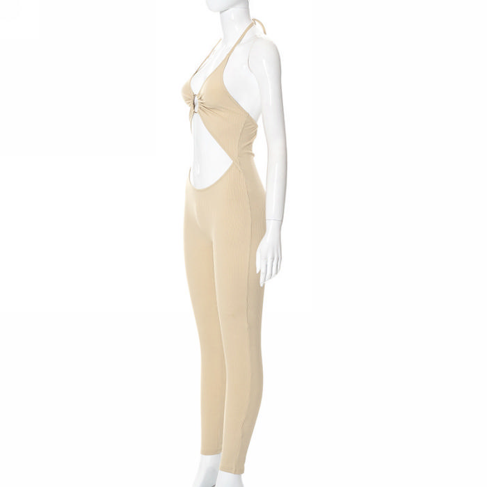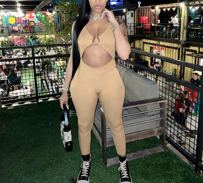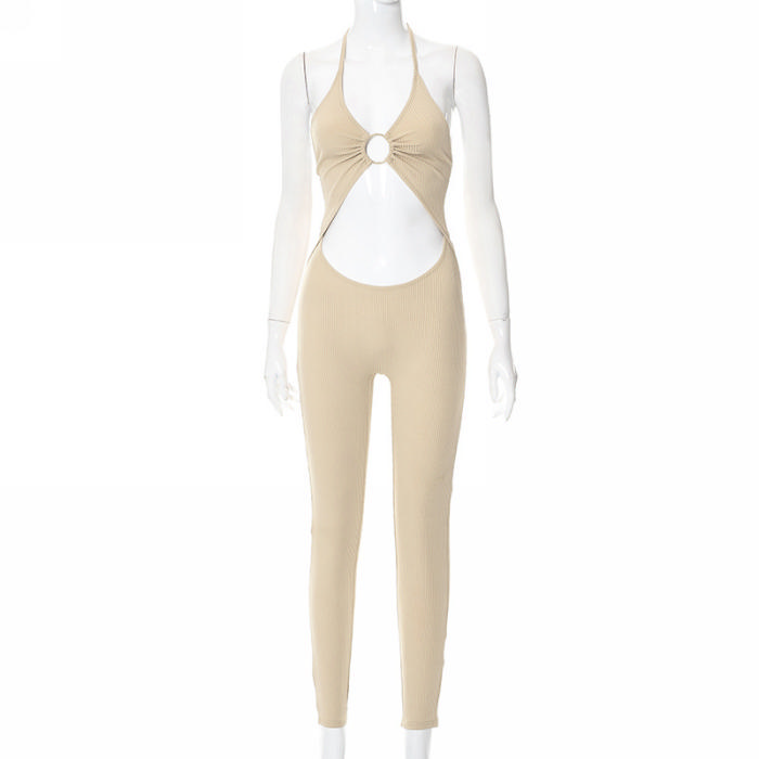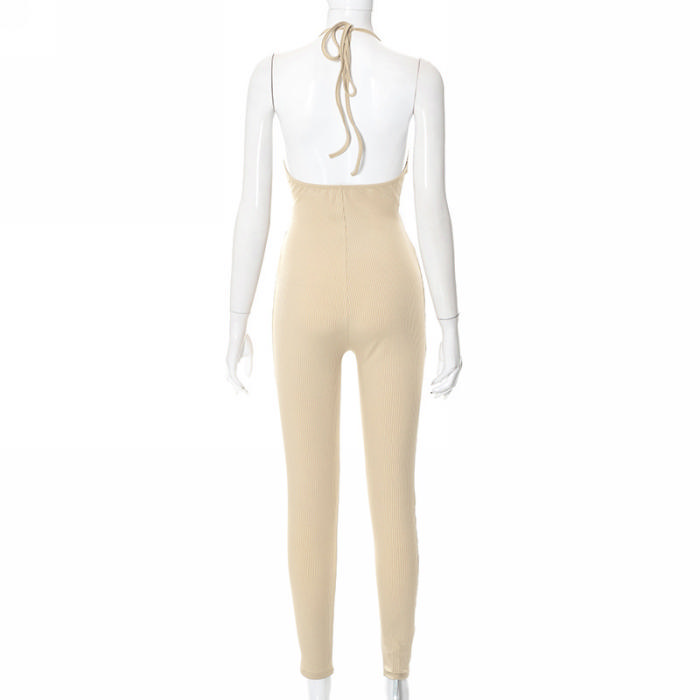 (Real Image)2022 Styles Women Fashion INS Styles Khaki Cut Out Halter JumpsuitSKU: #CF47101-1