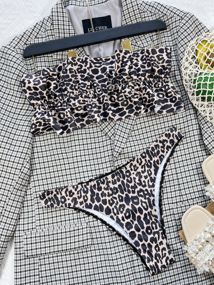 (Real Image)2022 Styles Women Fashion INS Styles Leopard Ruffle Bikini SetSKU: #CF55066-1