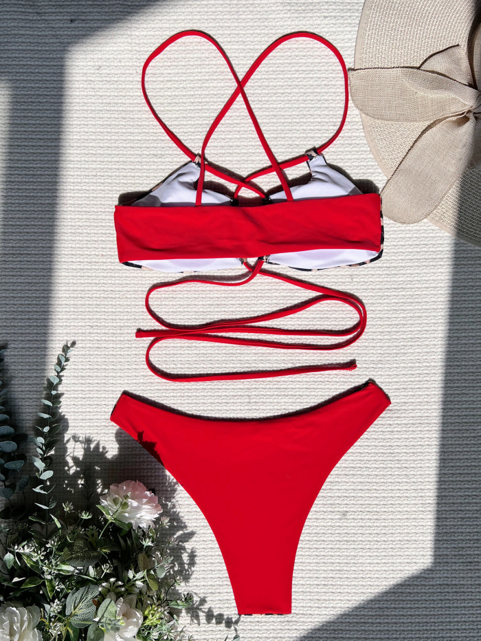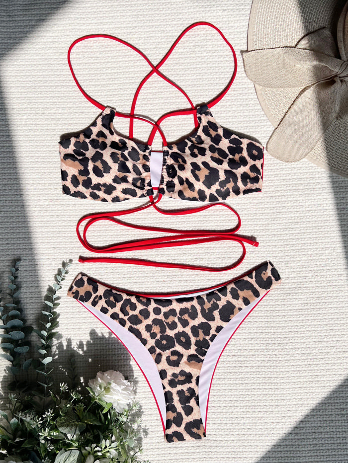 (Real Image)2022 Styles Women Fashion INS Styles Leopard Tie Lace Up Bikini SetSKU: #CF60046-1