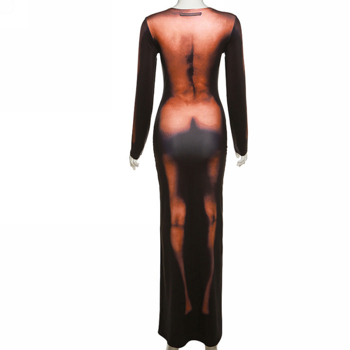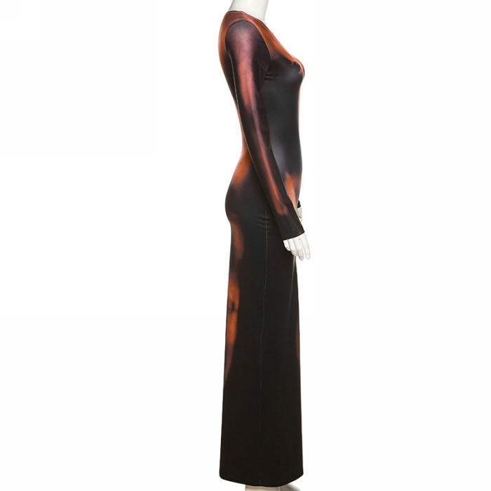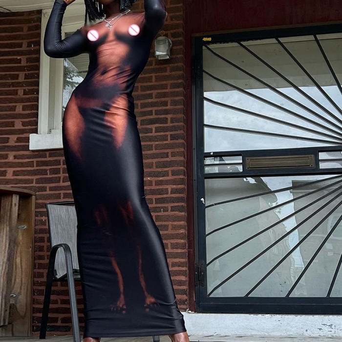 (Real Image)2022 Styles Women Fashion INS Styles Long Sleeve Print Maxi DressSKU: #CF49801-1