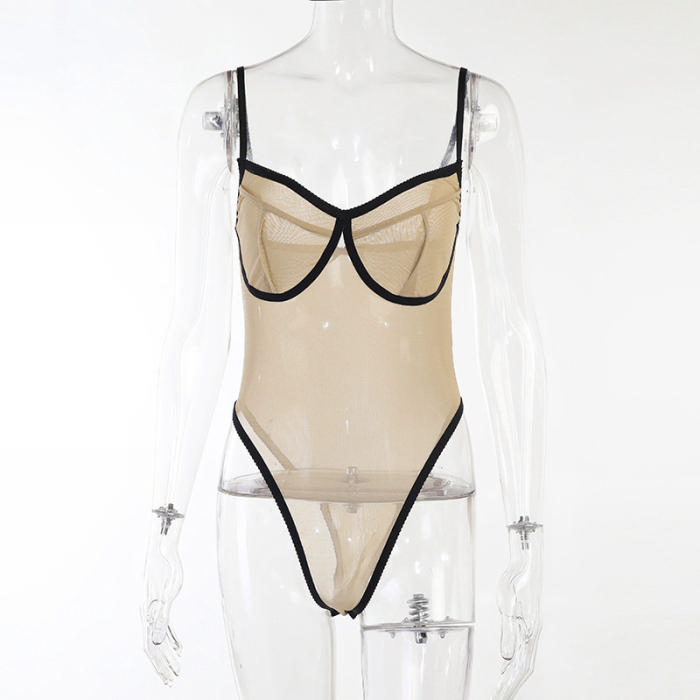 (Real Image)2022 Styles Women Fashion INS Styles Mesh BodysuitSKU: #XF92555-1