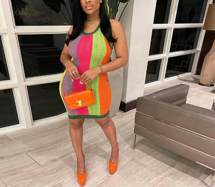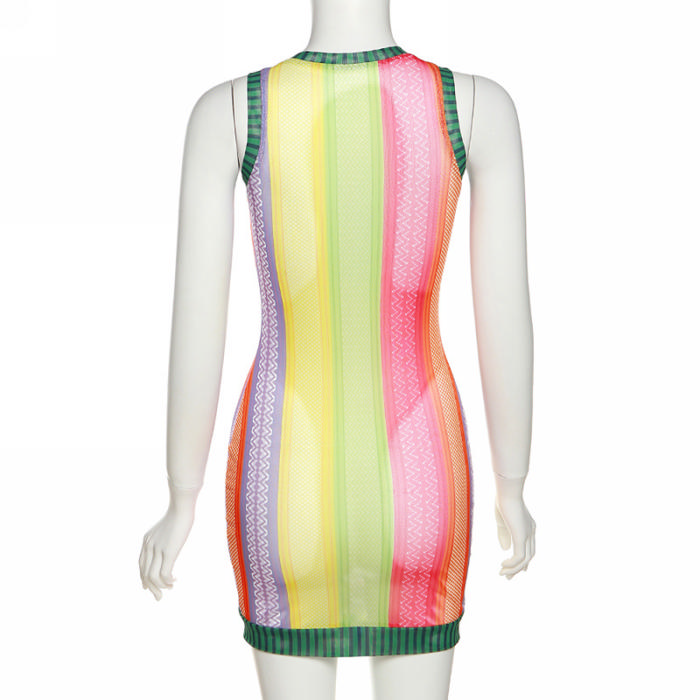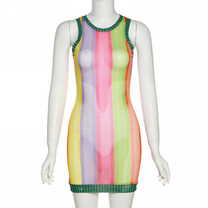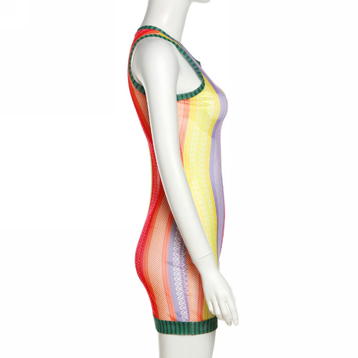 (Real Image)2022 Styles Women Fashion INS Styles Mesh Contrast Color Mini DressSKU: #CF49769-1