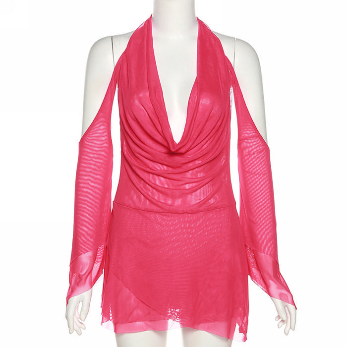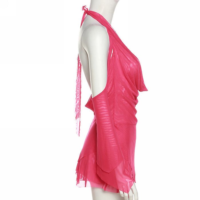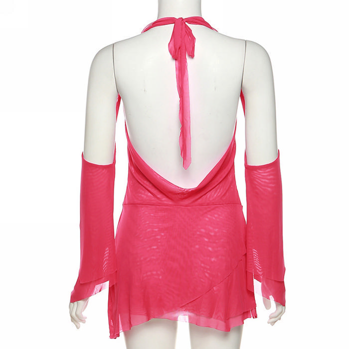(Real Image)2022 Styles Women Fashion INS Styles Mesh Deep V Neck Backless Club DressSKU: #CF49845-1
